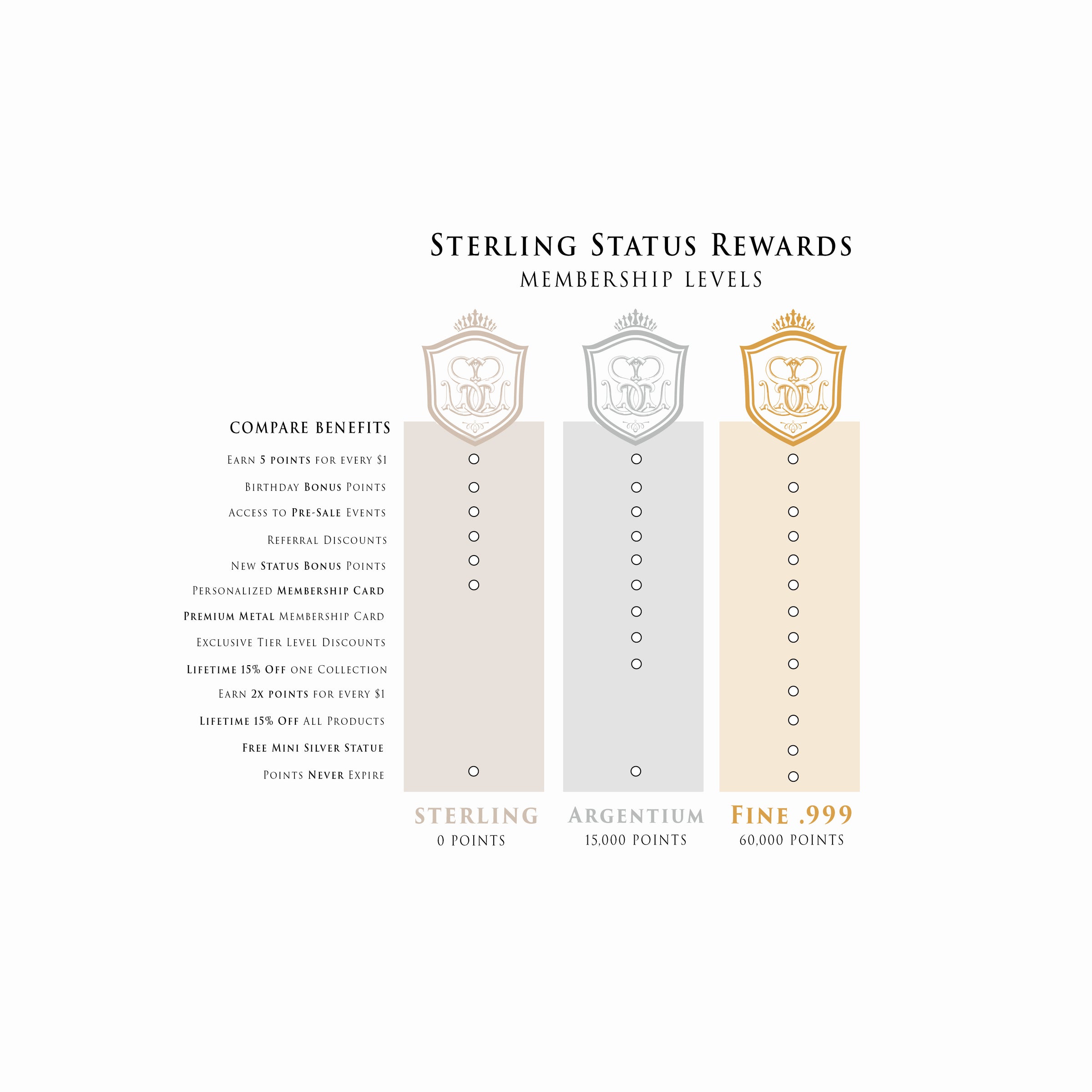 FINE .999 Status Members will receive a FREE Miniature of the annual Owner's Mintage Statue at the end of every calendar year.